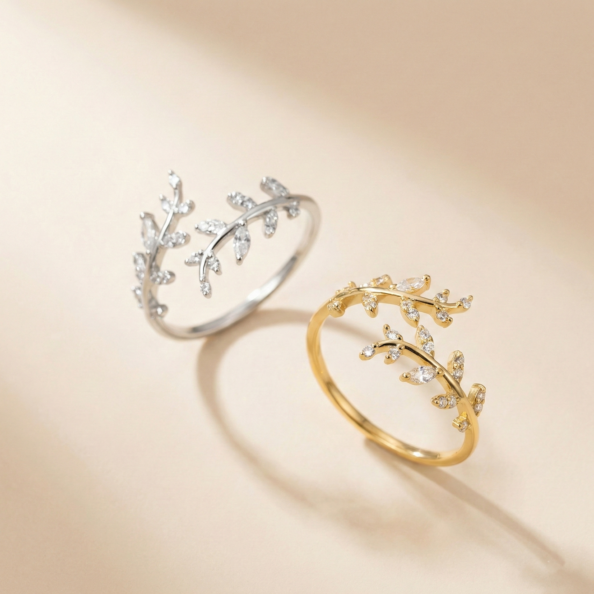 Anillo de diseño inspirado en la forma de la hoja, creado para aportar un toque elegante y femenino a cualquier look. Su acabado bicolor con baño metálico de alta calidad ofrece un brillo sutil y una estética moderna, perfecta para el día a día o para ocasiones especiales.